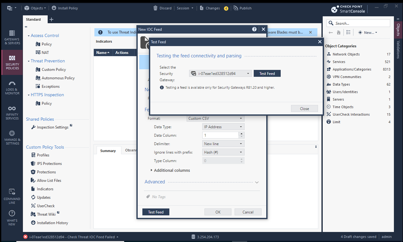Before you begin, please ensure your Checkpoint device supports ingesting blocklists. If you are unsure, please refer to the Checkpoint documentation or contact Checkpoint support.