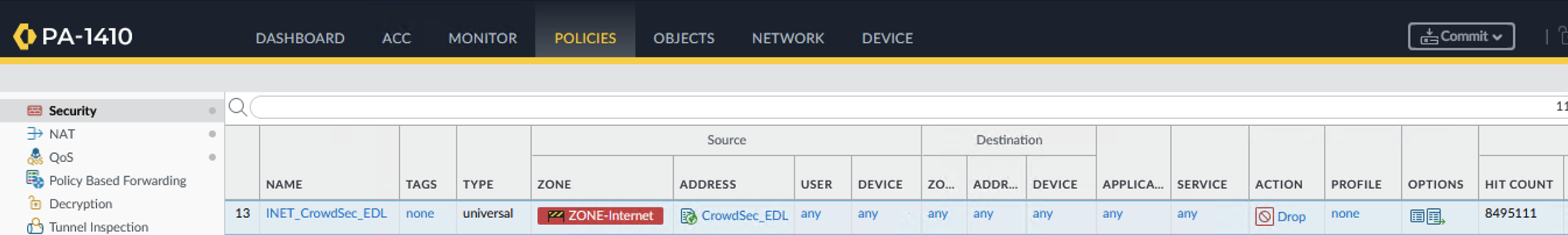 1. Create a security policy with this dynamic list